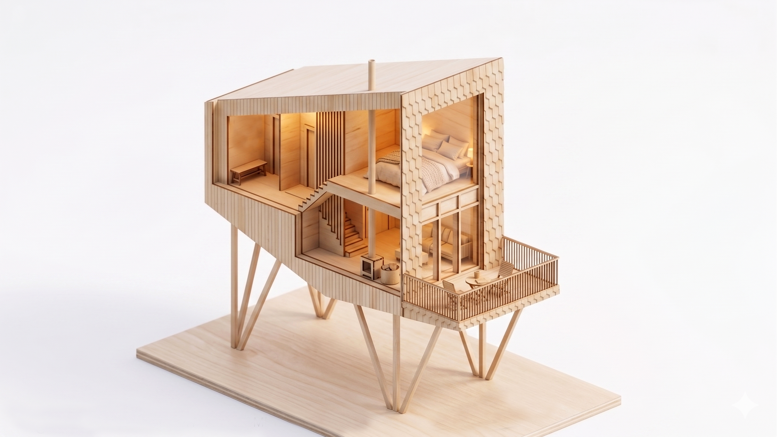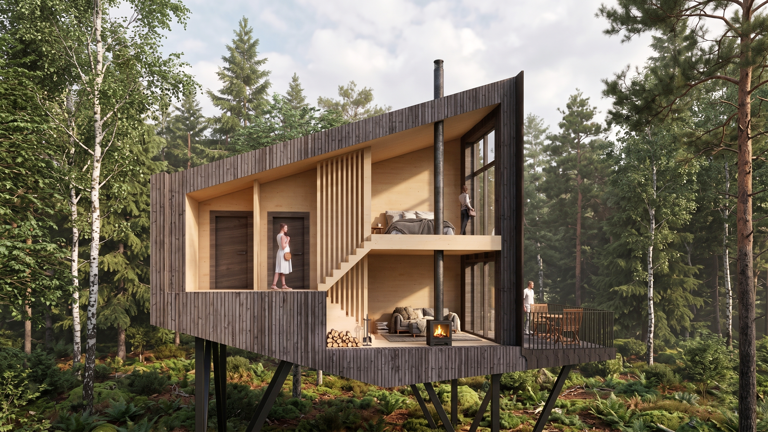 Birdhouse is a compact yet remarkably cozy 42 m² cabin designed for comfortable accommodation of a family of 2–4 people
