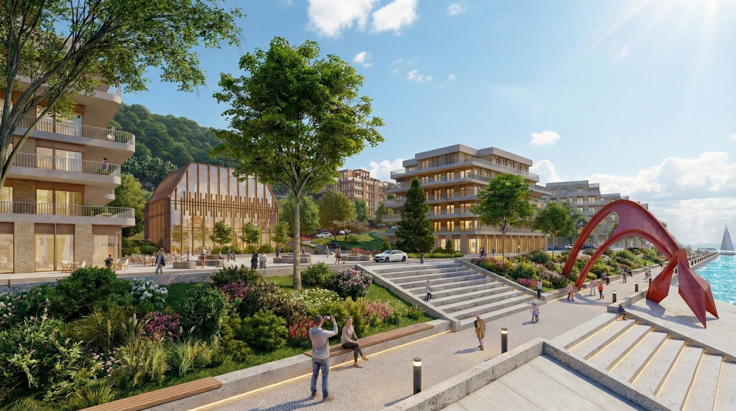 The Sluda masterplan represents a sophisticated integration of contemporary architecture with the dramatic natural landscape of the River banks. Our masterplan is driven by two primary objectives: creating a unique, high-quality living environment and ensuring a harmonious union with nature.